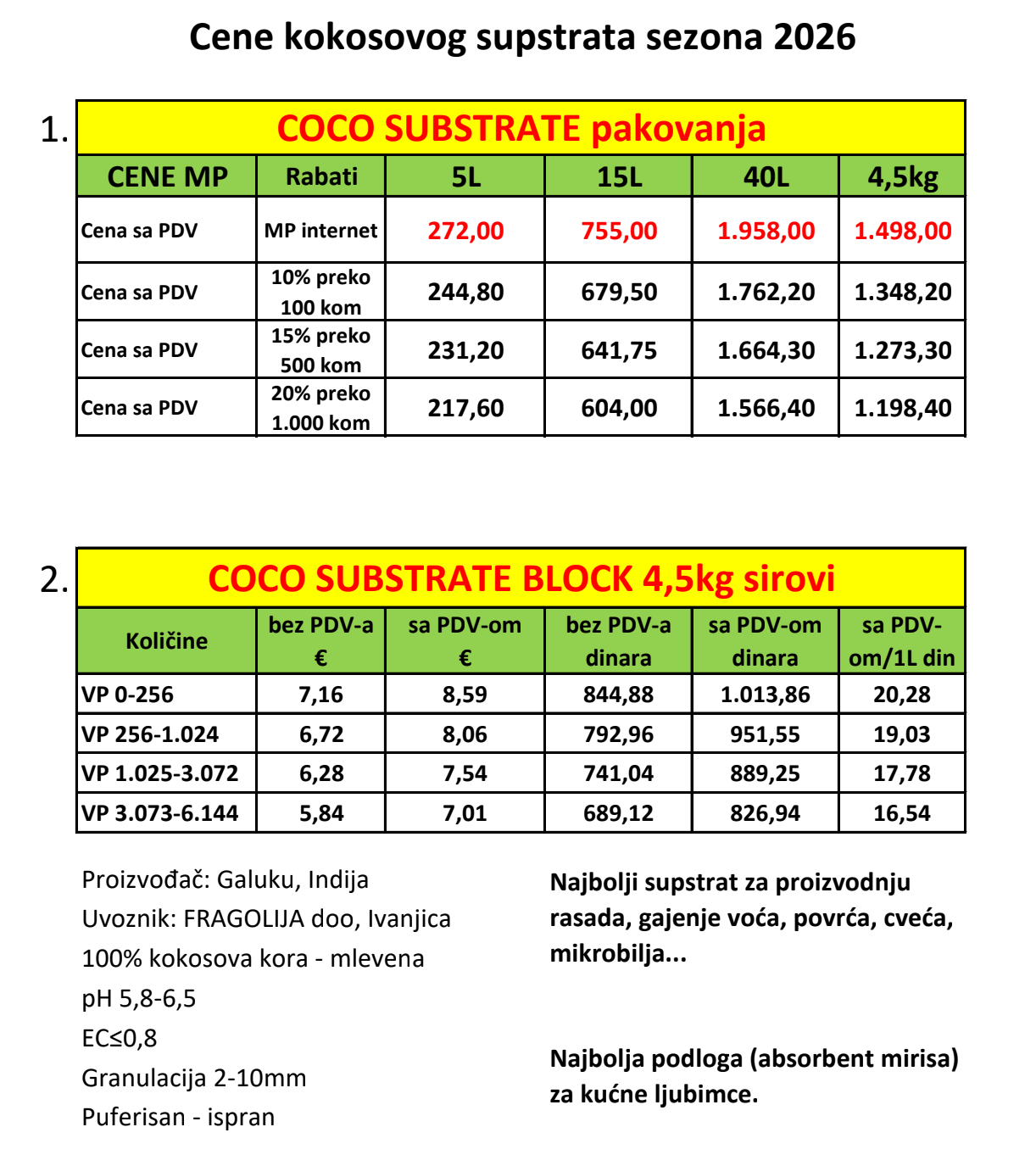 Cene kokosa 2026 PDF